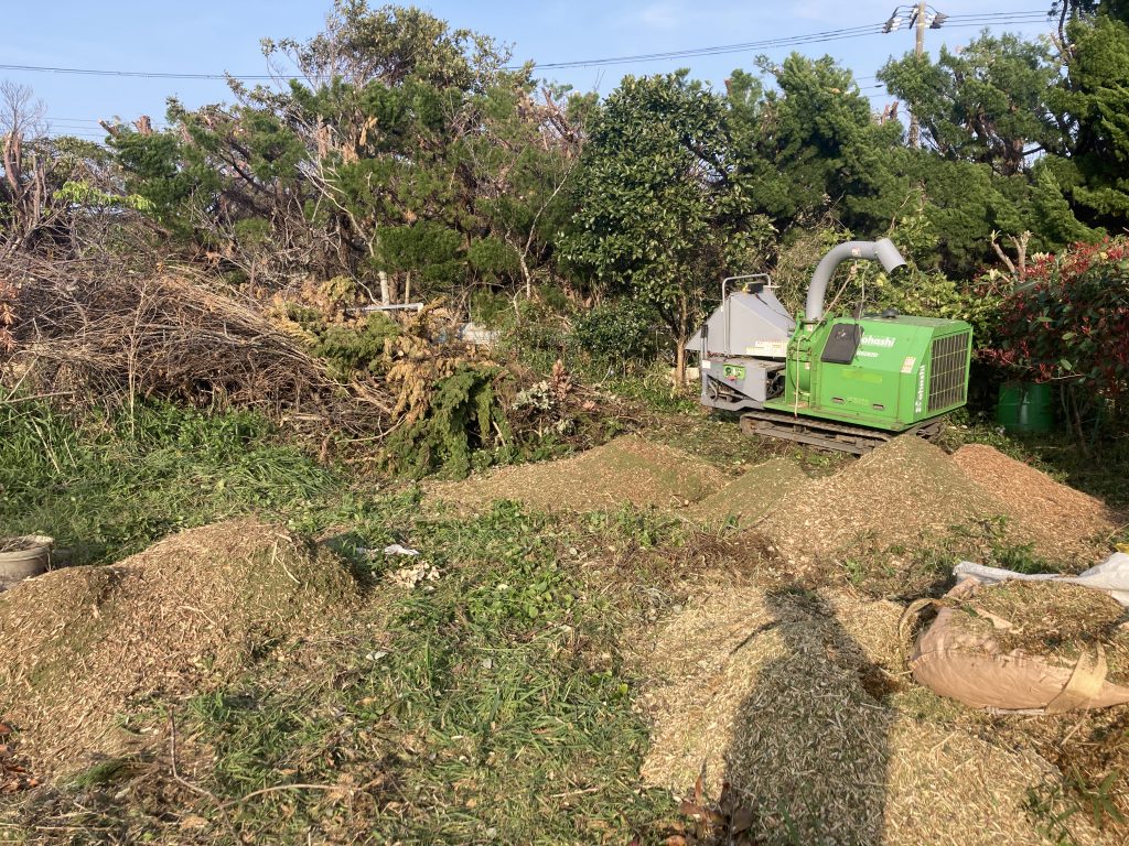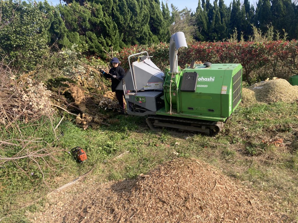 トラックで搬送処分するよりチッパー粉砕のほうがコスト的にも安くなるのでこちらを提案させていただきました。
